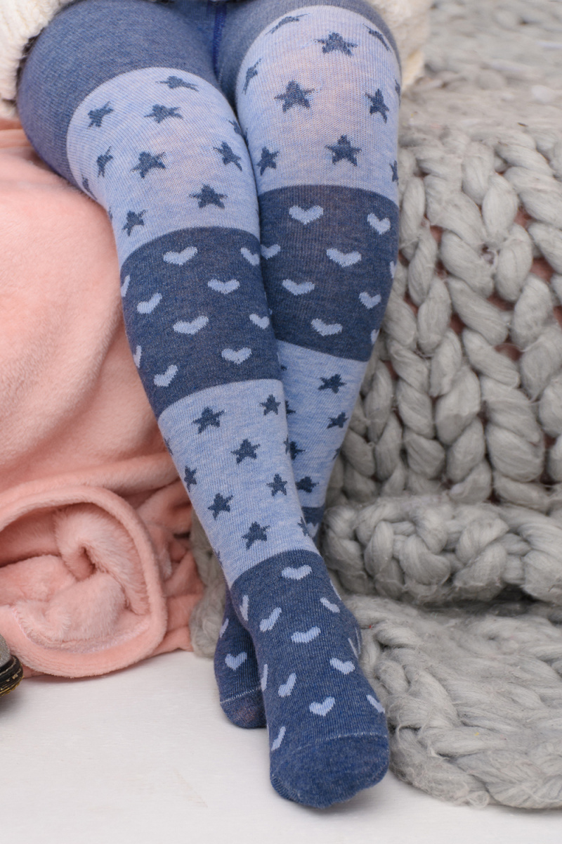 Колготки с вязаным рисунком в виде сердечек и звездочек для девочек