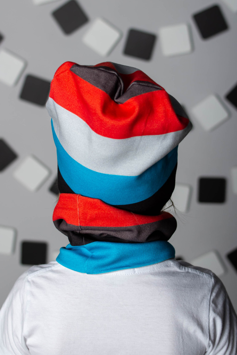 Комплект: шапка + шарф-снуд для мальчиков в насыщенной современной расцветке