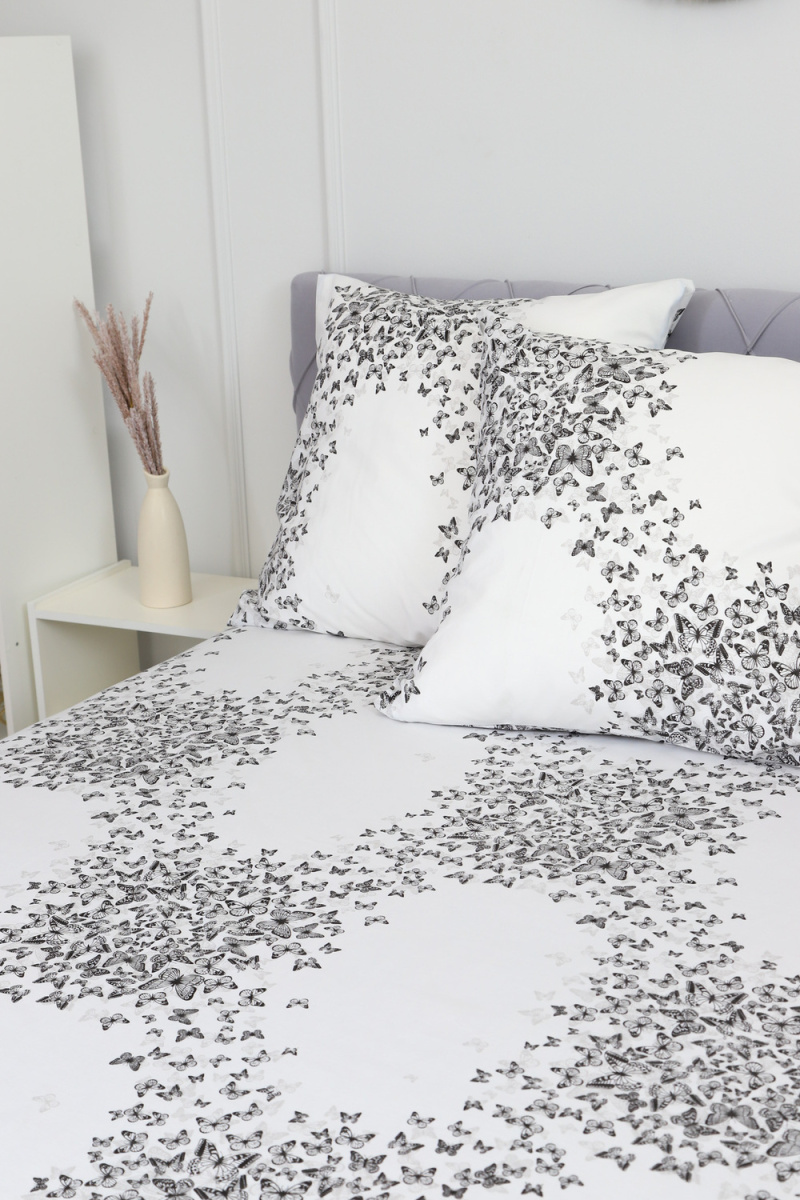 В данной расцветки Вы можете приобрести простыни и пододеяльники. Также представлен весь ассортимент в ткани Бабочки-компаньон. Создайте идеальный комплект постельного белья для Вашего сна!
