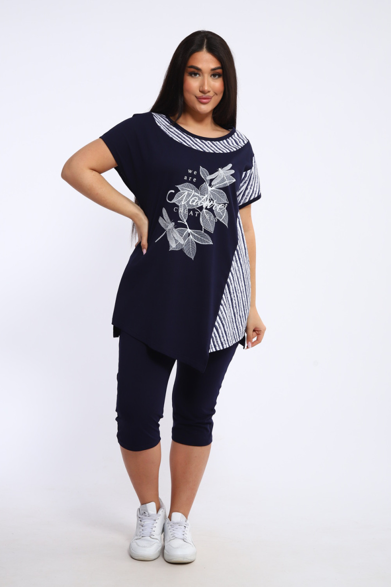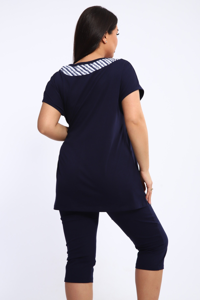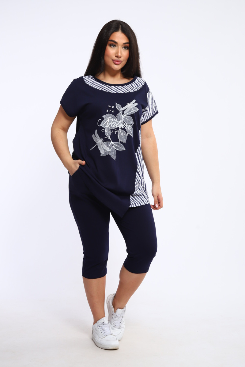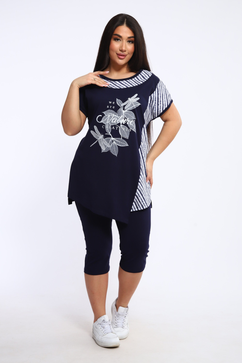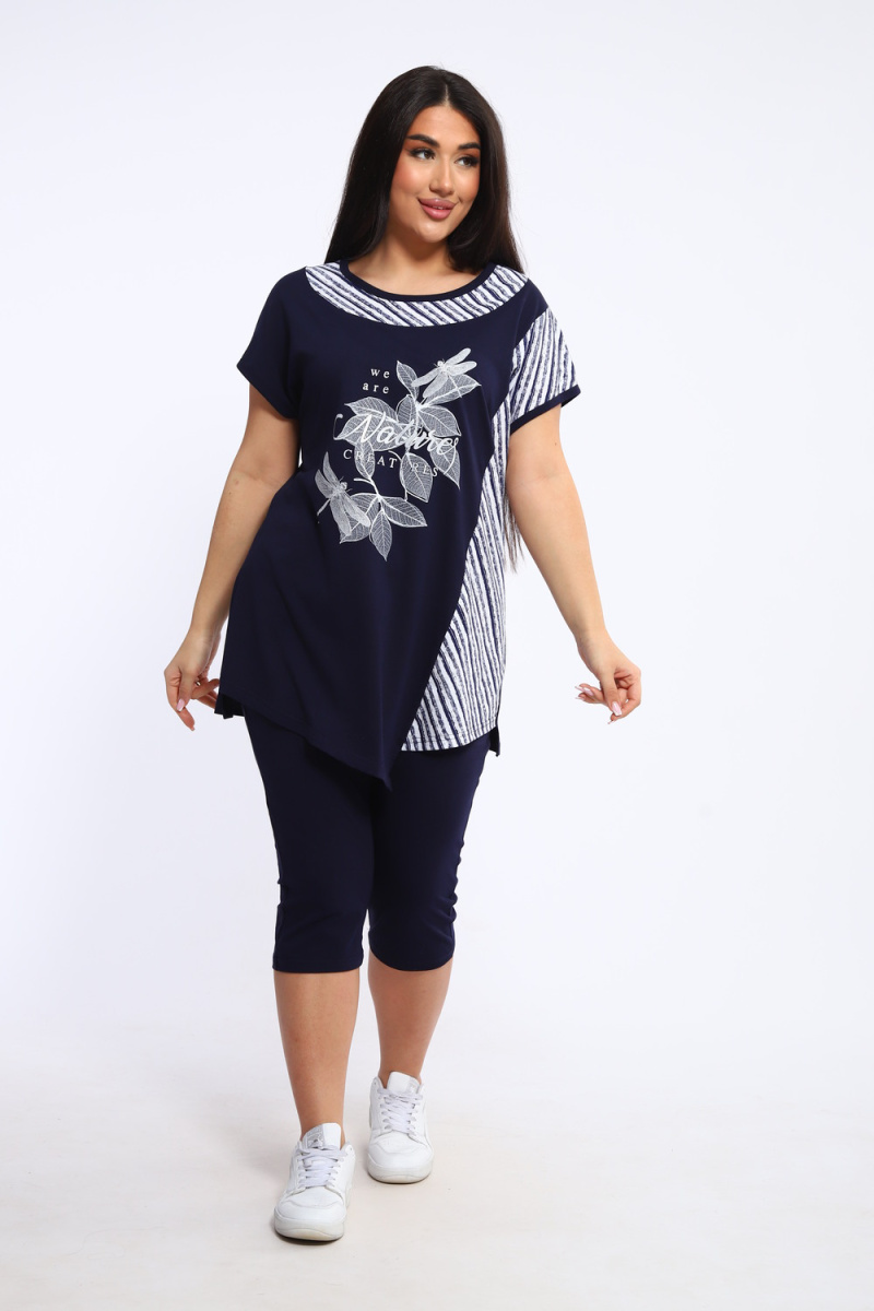 Костюм женский домашний ZIZAF имеет свободный покрой, что позволяет свободно двигаться и чувствовать себя комфортно. Рукава короткие, а вырез горловины круглый, что делает этот костюм еще более удобным для ношения дома.